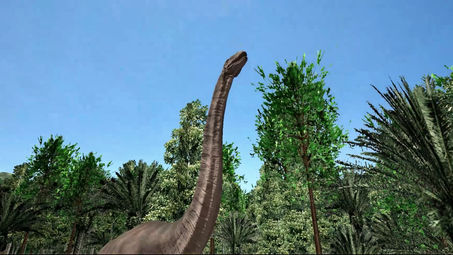 恐竜が出現するパーク内を、トリケラトプスの背中に乗ってコントローラーを操作し、回遊していくコンテンツです。